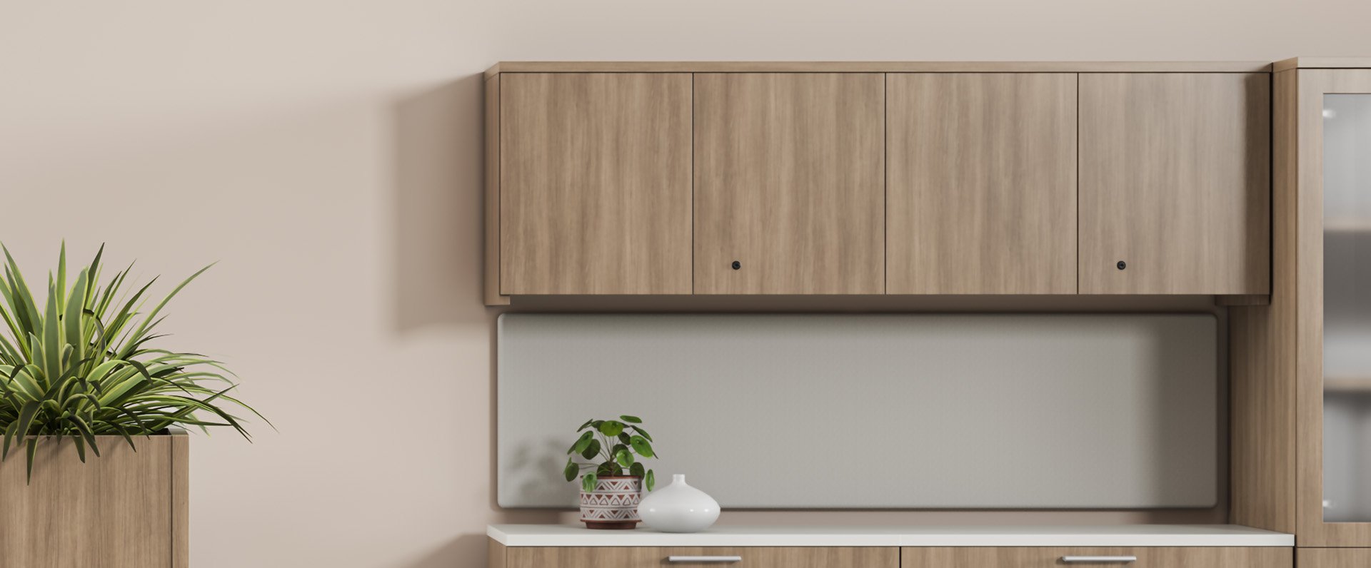 Declutter your workspace with KI overhead storage. Keep worksurfaces clear of materials with elevated storage and close the doors for an attractive, clean office. Learn more